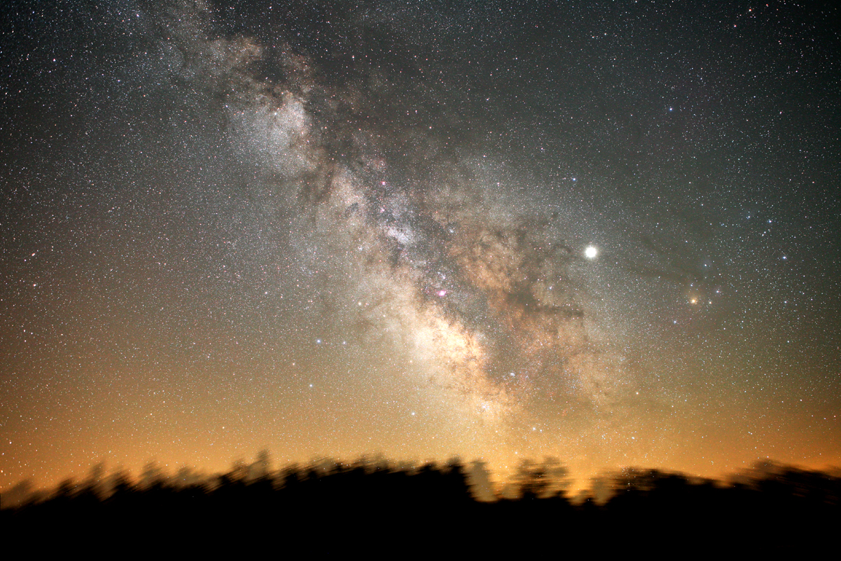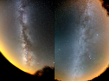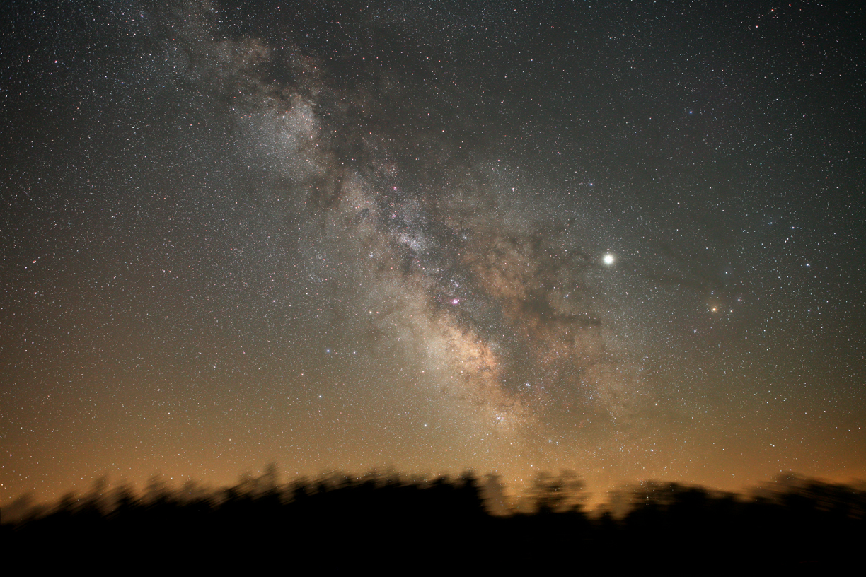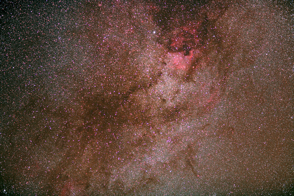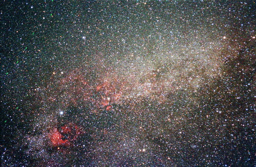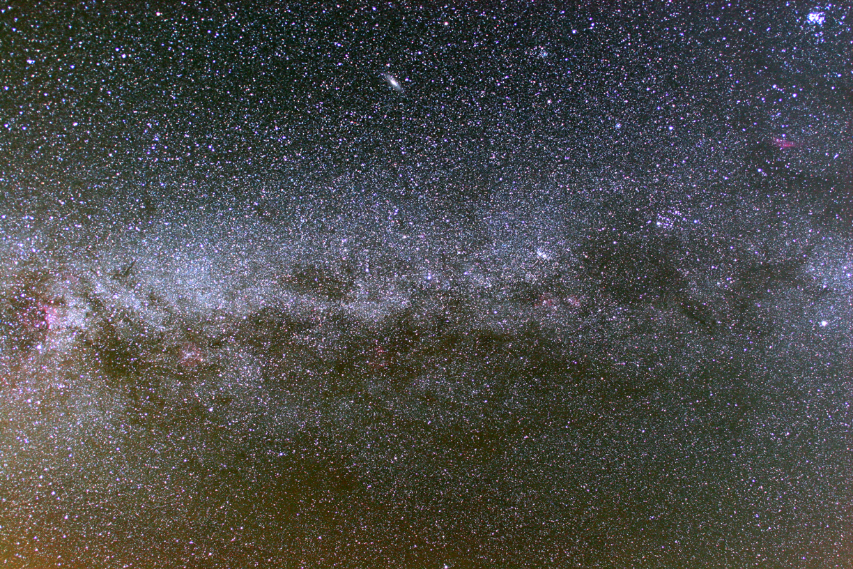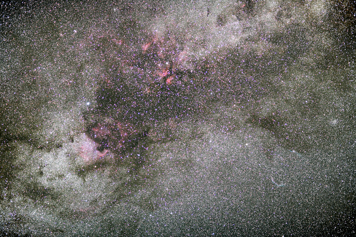 This wide-field astrophotography was completed at the dark sky of Cherry Springs State Park (Potter County,PA) These images were created with a Canon 5D between the years of 2005-2008. I became an avid deep sky observer in 1999 and traveled to the park 96 times 2002-2009 to escape light pollution. Improving telescopic views, to see more structure in deep sky objects, meant accessing dark nights of exceptional transparency and seeing. This occurs randomly throughout the year's new moons. Below are the results of chasing fine nights of atmospheric clarity, free of moisture from the nearby great lakes. Captured, is the plane of the Milky Way, the galaxy our sun resides. The attempt was to expose the cameras sensor to the saturation limit. This varies depending on the amount of moisture and particulates through the altitude of the atmosphere. Most importantly the reflection of light pollution from distant horizons. All images were processed using simple RGB levels/curves,darkening the sky background.